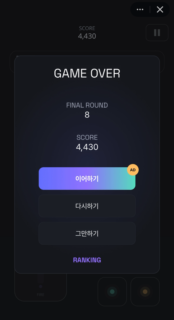 - 광고 시청 후 이어하기 기능 제공