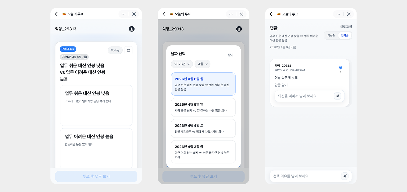 하루 한 번 투표하고 댓글로 소통하는 서비스